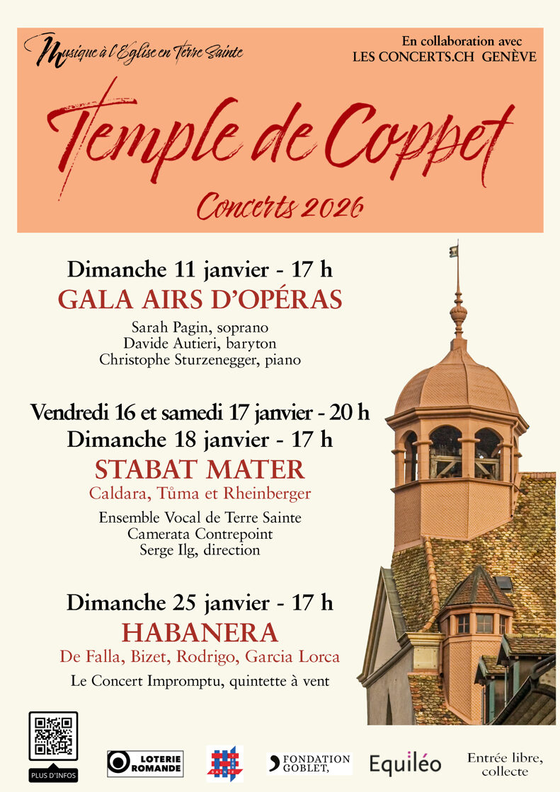 Concerts les 16, 17 et 18 janv. 2026 au Temple de Coppet